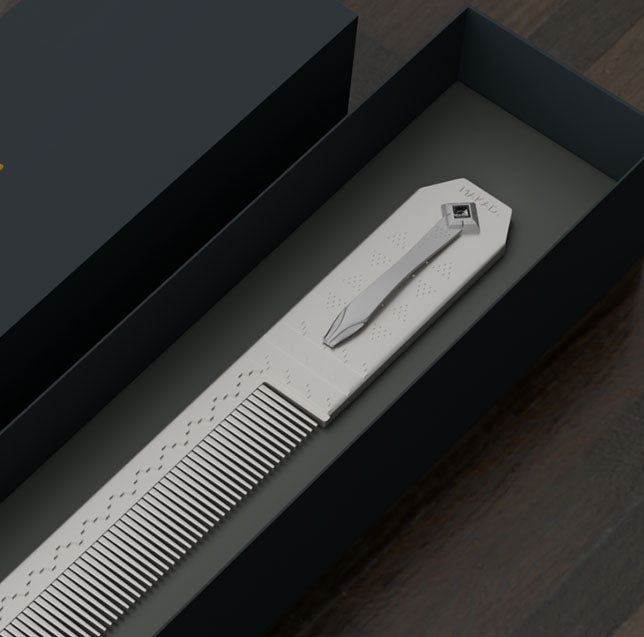 Powerful Sinesteel comb, rust and mold resistant, elegant, and studded with synthetic crystal.