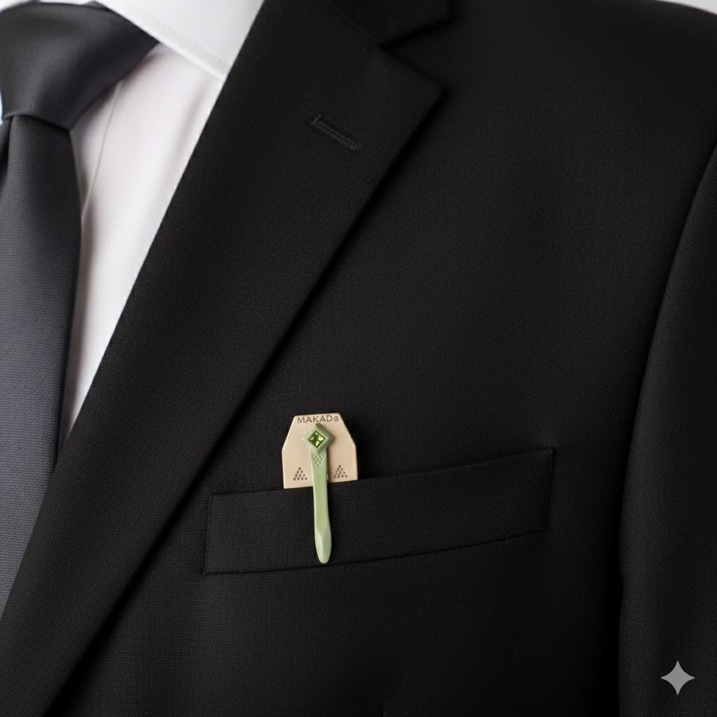 The powerful Sinstel comb, anti-rust and anti-fungal, elegant, and studded with synthetic emerald.